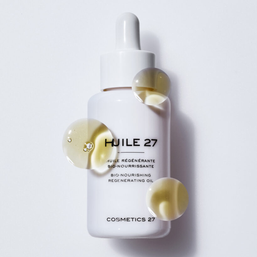 L’Huile 27 est un véritable élixir de soin anti-âge qui nourrit, hydrate, adoucit, régénère et protège la peau. Ce savant mélange de 7 huiles et extraits huileux végétaux naturels apporte à la peau « nutriments » essentiels qui aident à rééquilibrer les fonctions et à restructurer le tissu épidermique. La formule, basée sur l’extrait huileux de Centella Asiatica , contribue à la régénération de la barrière cutanée (Oméga 6 et Oméga 3 , pro vitamine A) et au renforcement des défenses naturelle anti oxydantes (Vitamine E). L’extrait huileux de carotte apporte un effet « bonne mine » et illumine le teint. Convient à tout type de peau. Eviter l’application « pure » sur les peaux à tendance mixte et grasse